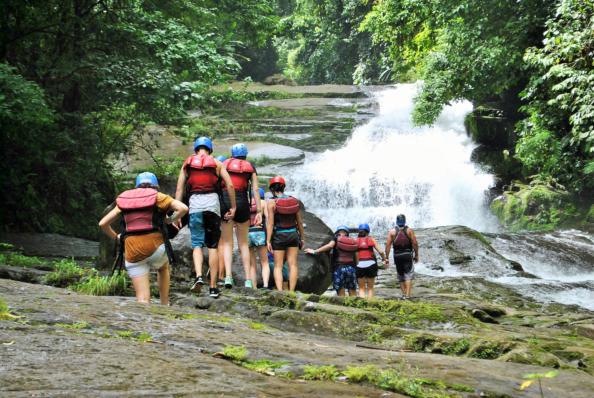 We will direct toward the mountains of on the southeast side of Turrialba where the Canyoning tour is located. Arriving to Sitio Mata, the specialized guides will take charge of preparing to the whole group for literally descend for 5 waterfalls and at the end 1 natural water slide.
