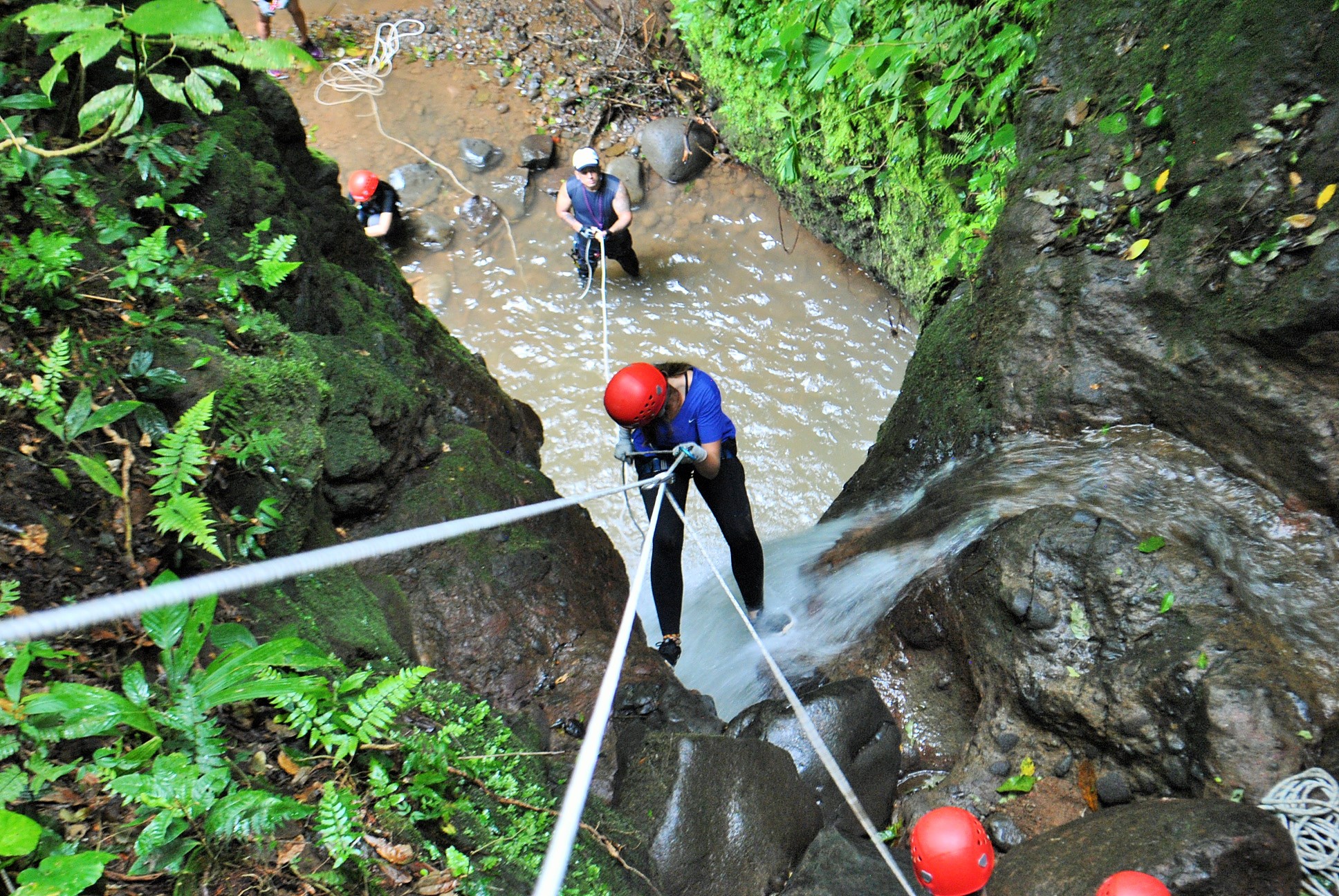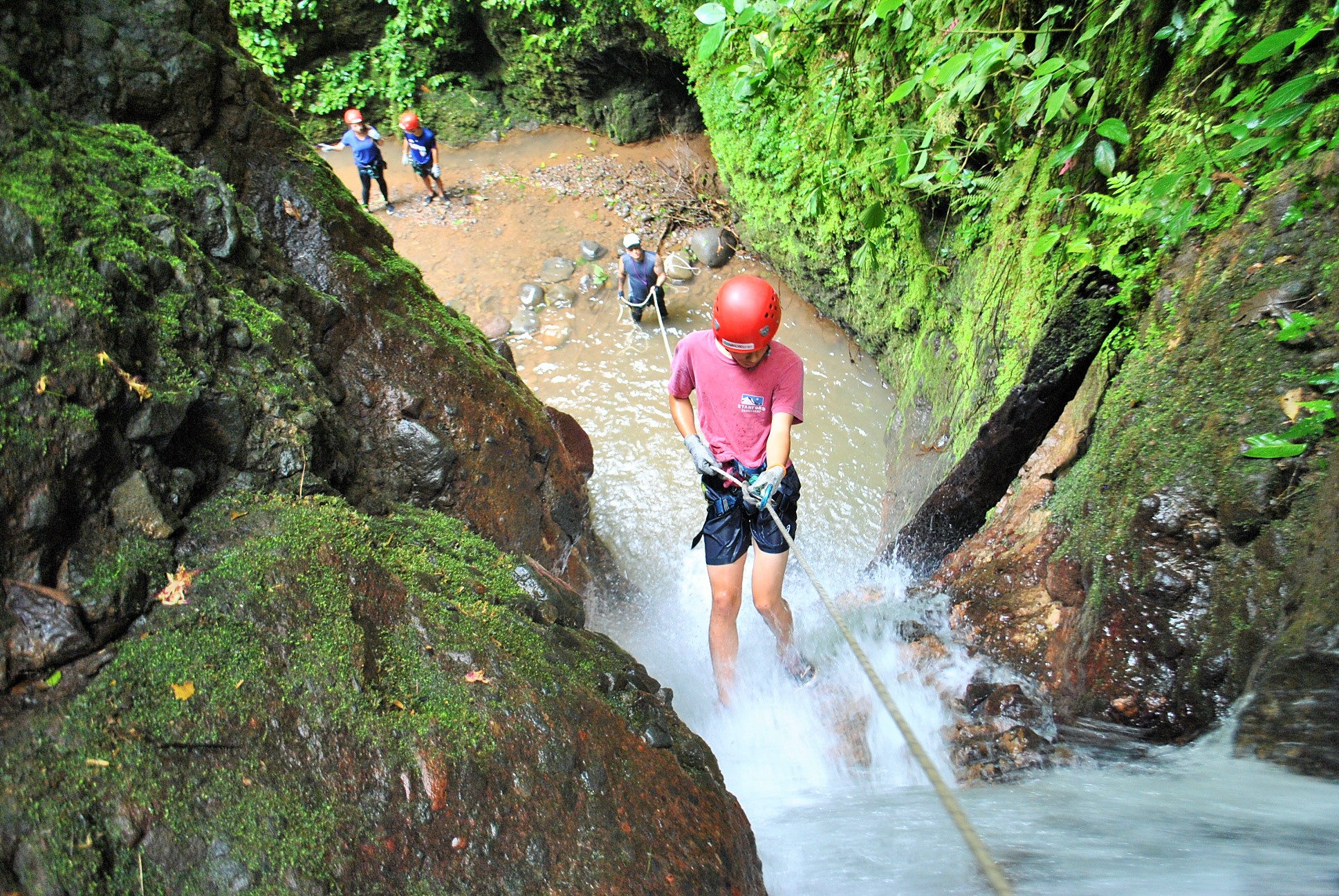 Los clientes serán recogidos en Turrialba de manera diferente, y nos dirigiremos hacia las montañas en el lado sureste de Turrialba, donde se encuentra el tour de barranquismo. Al llegar a Sitio Mata, los guías especializados se encargarán de preparar a todo el grupo para descender literalmente durante 5 cascadas y al final 1 tobogán de agua natural, una buena charla de seguridad e instrucciones y todo el mundo listo para la aventura.